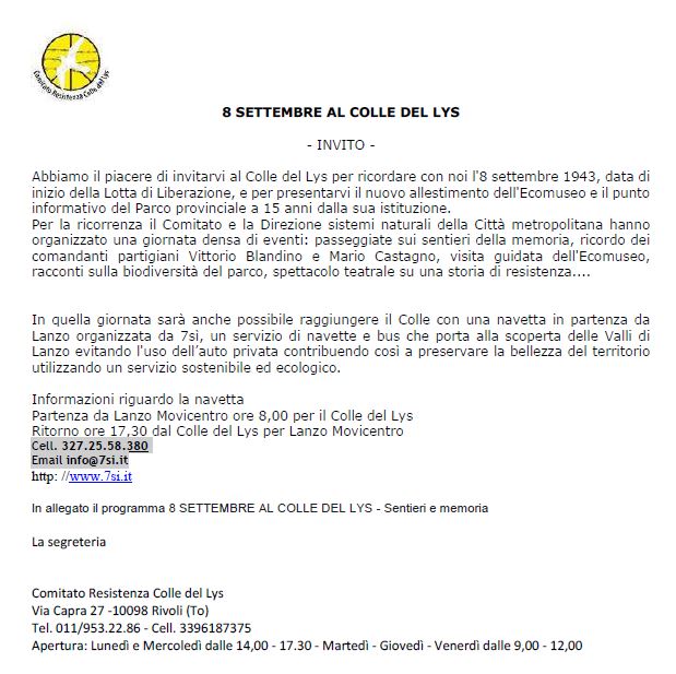 Commemorazione dell'inizio della Lotta di Liberazione e presentazione del nuovo allestimento dell'Ecomuseo e il punto informativo del Parco Provinciale a 15 anni dalla sua ristrutturazione.