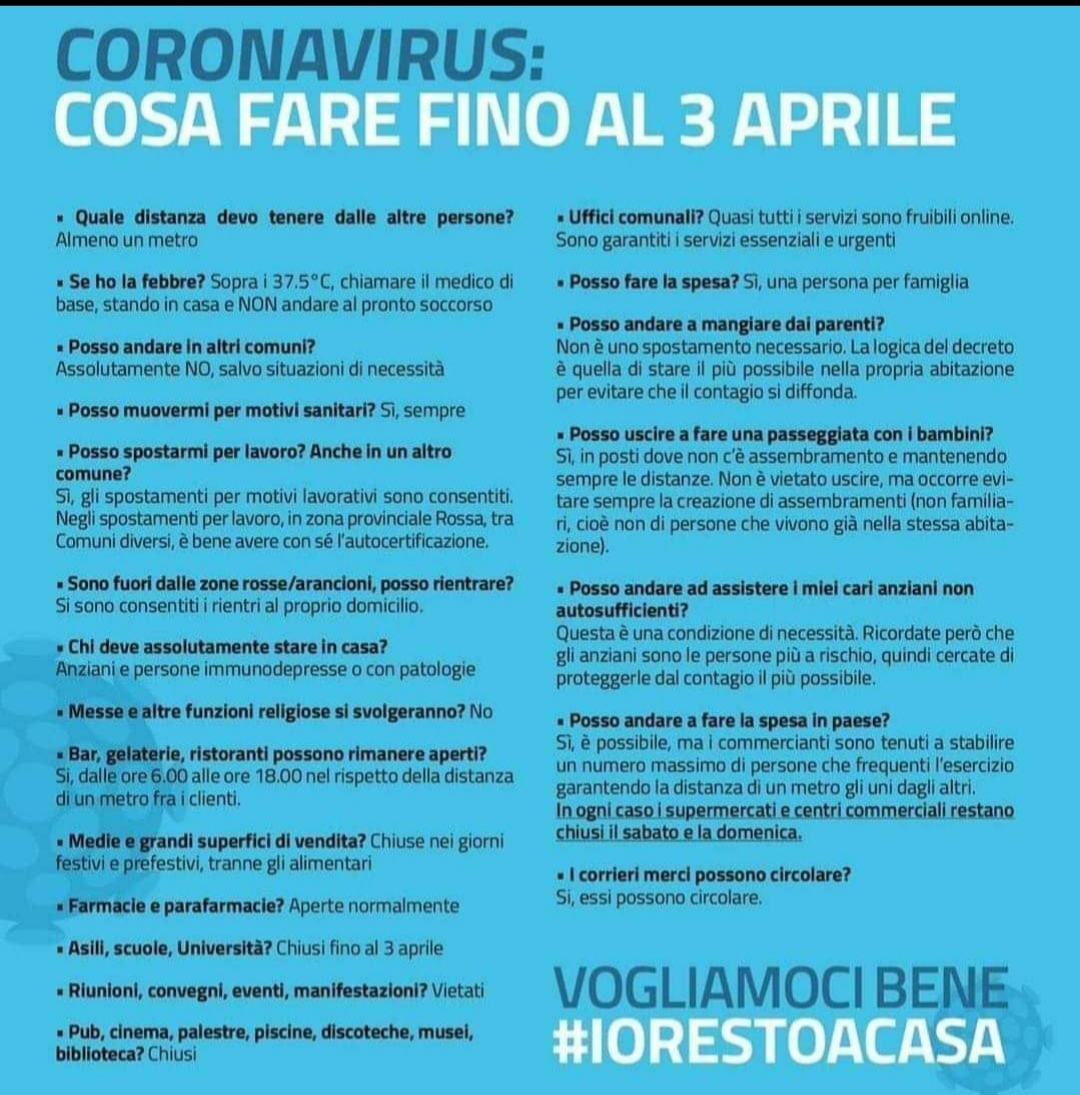 In allegato un vademecum con i comportamenti da seguire per prevenire ogni possibile contagio o trasmissione del coronavirus.