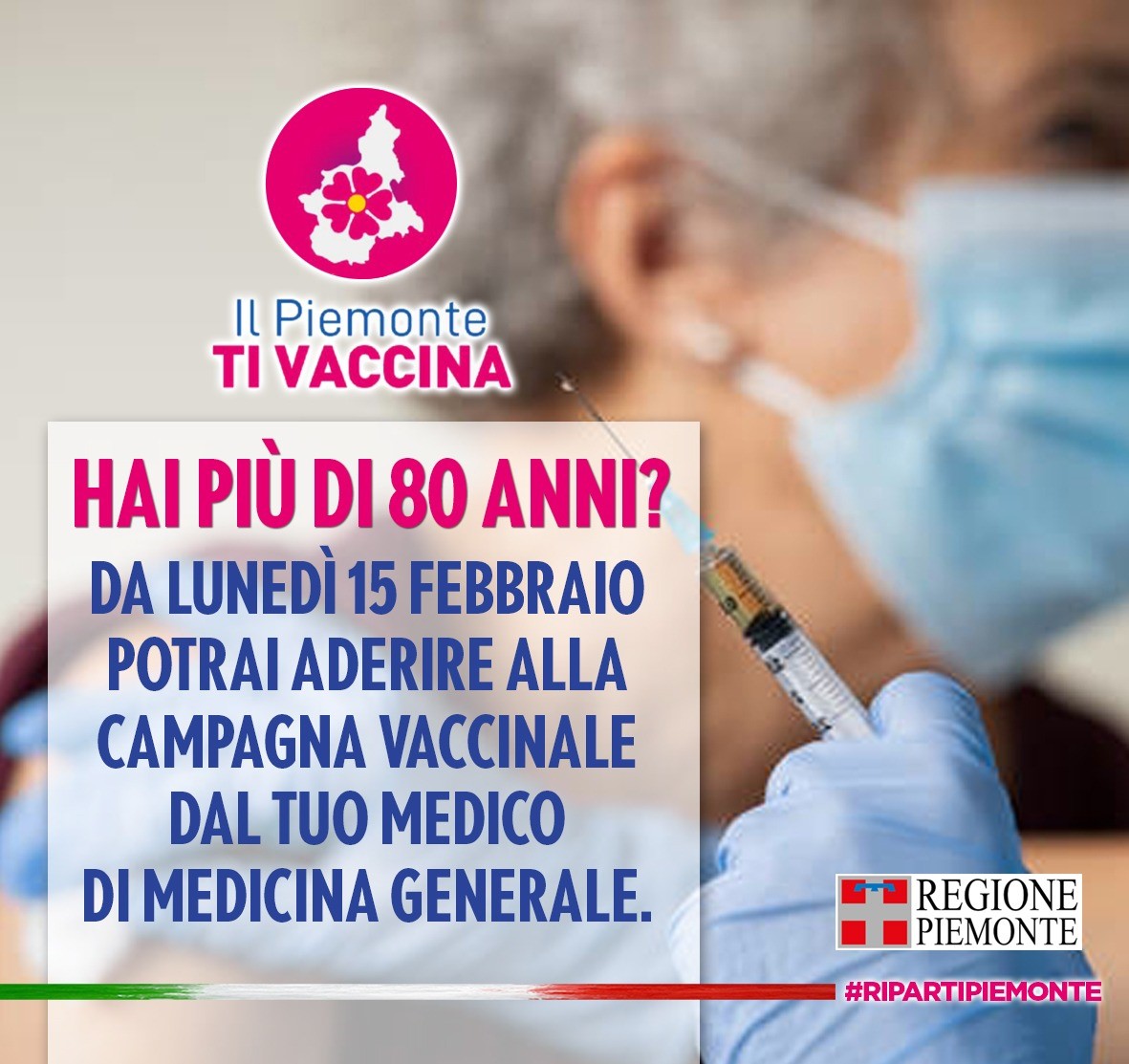 Da lunedì 15 febbraio le persone con più di 80 anni (nati nel 1941 compresi) potranno segnalare la loro volontà di ricevere il vaccino al proprio medico di famiglia. Ogni medico indicherà eventuali priorità sulla base del quadro clinico dell'assistito e ne registrerà l’adesione sull’apposita piattaforma regionale.