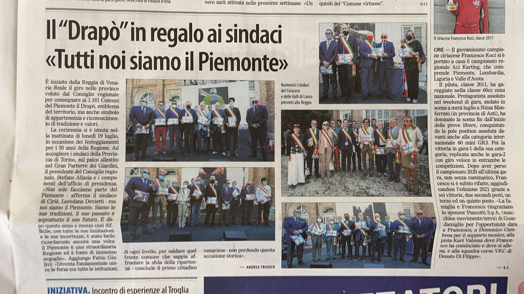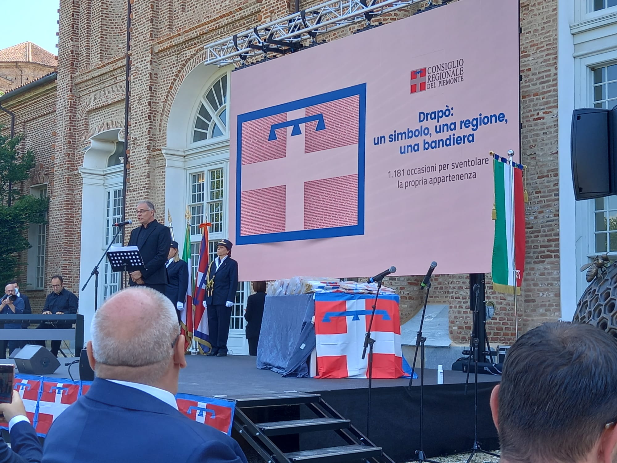 Anche il nostro Comune, lunedì mattina nei giardini della Reggia di Venaria Reale, ha ricevuto il "Drapò" della Regione Piemonte, la bandiera simbolo del territorio piemontese, dalle mani del presidente del Consiglio regionale Stefano Allasia.