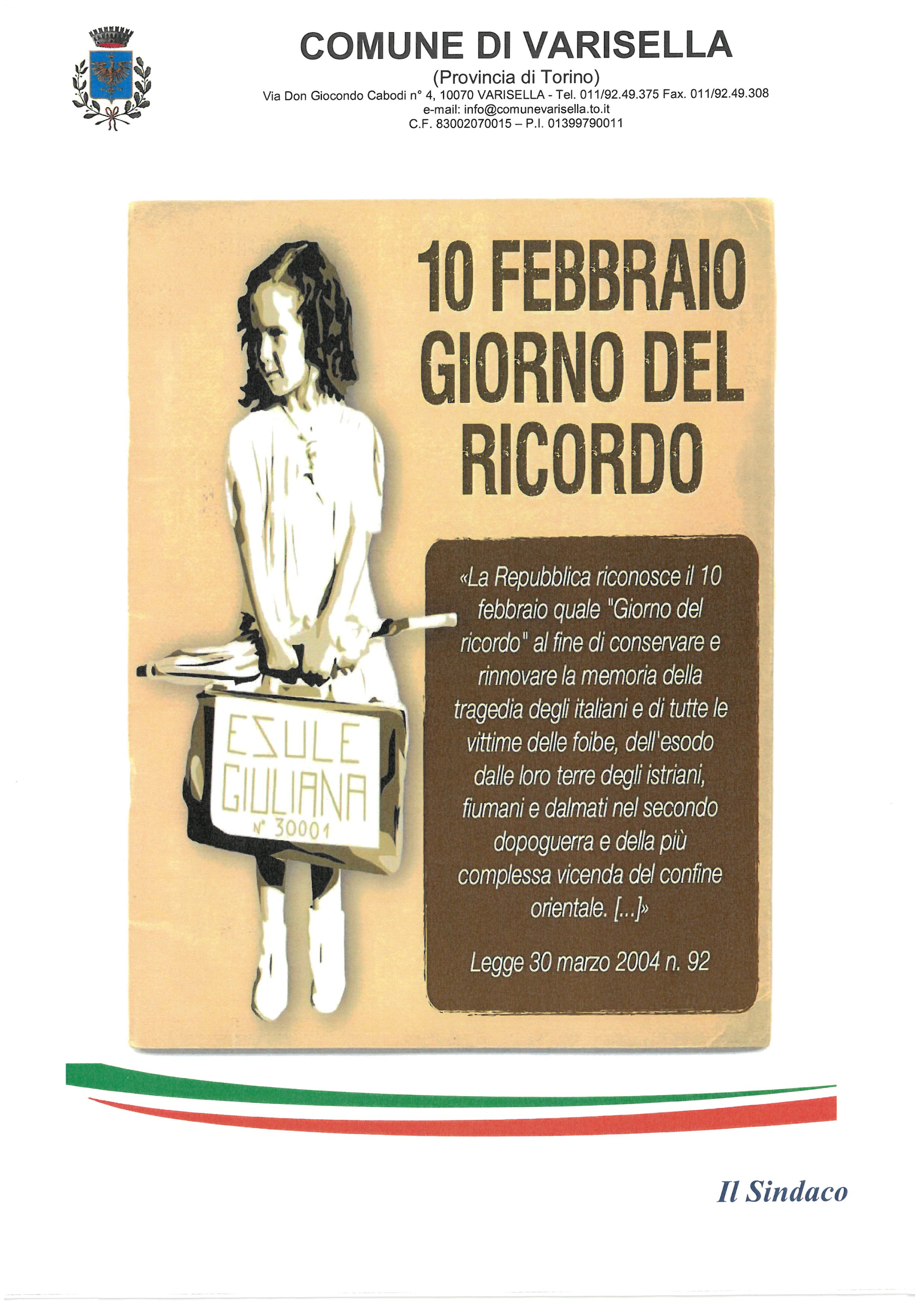 Il 10 febbraio, come tutti gli anni, si celebra il Giorno del Ricordo, la giornata in cui la Repubblica conserva e rinnova la memoria della tragedia degli italiani e di tutte le vittime delle foibe, dell'esodo dalle loro terre degli istriani, fiumani e dalmati nel secondo dopoguerra e della vicenda del confine orientale.
