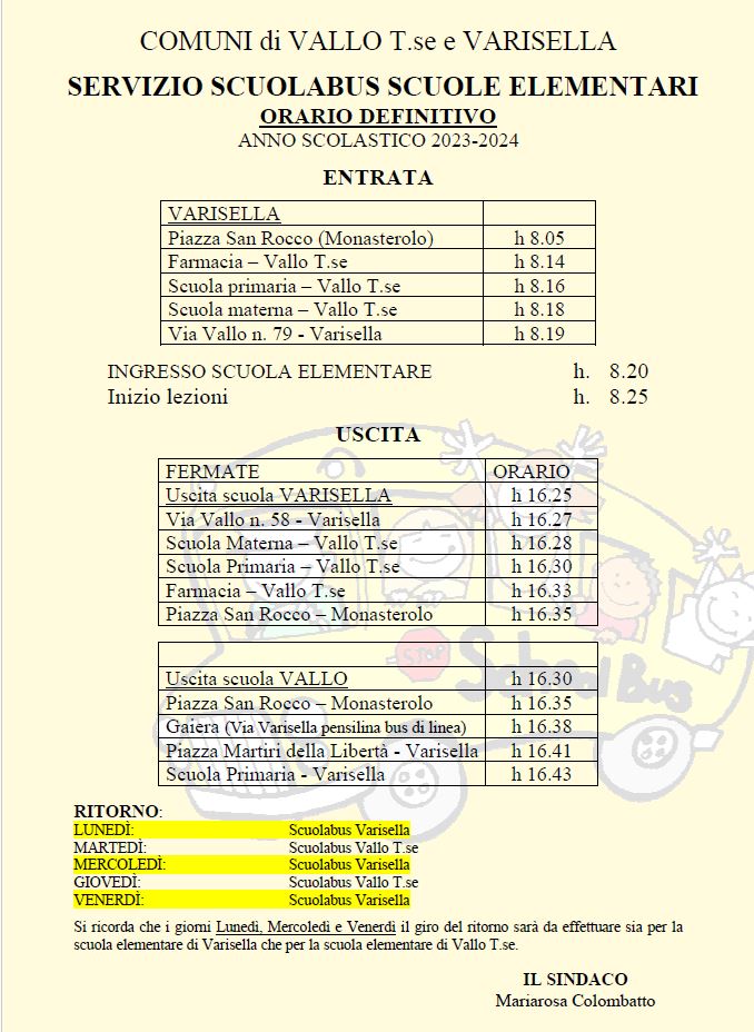 In allegato il prospetto dell'orario definitivo per le scuole elementari