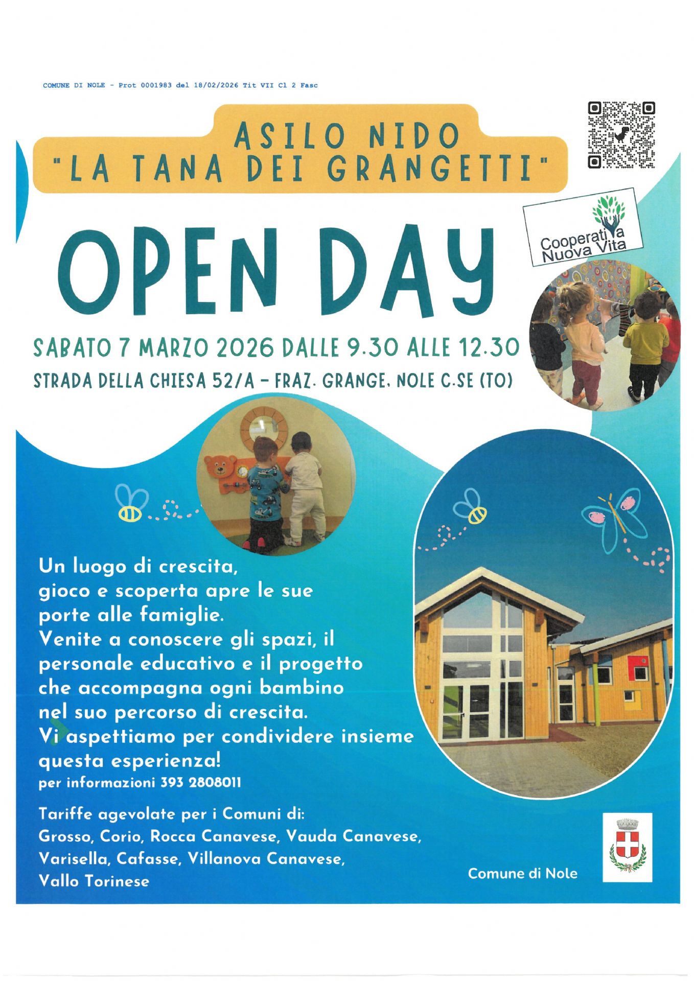 Sabato 7 marzo dalle 9.30 alle 12.30 l’asilo nido dei Grangetti di Nole apre le sue porte!