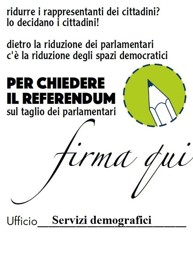 Presso l'ufficio dei servizi demografici, nell'orario d'ufficio, è possibile firmare per il referendum inerente il taglio dei parlamentari.