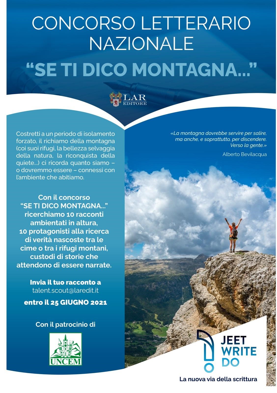 La casa editrice LAReditore promuove il concorso letterario nazionale "Se ti dico montagna..." patrocinato da Uncem, per racconti inediti di max 25mila caratteri.