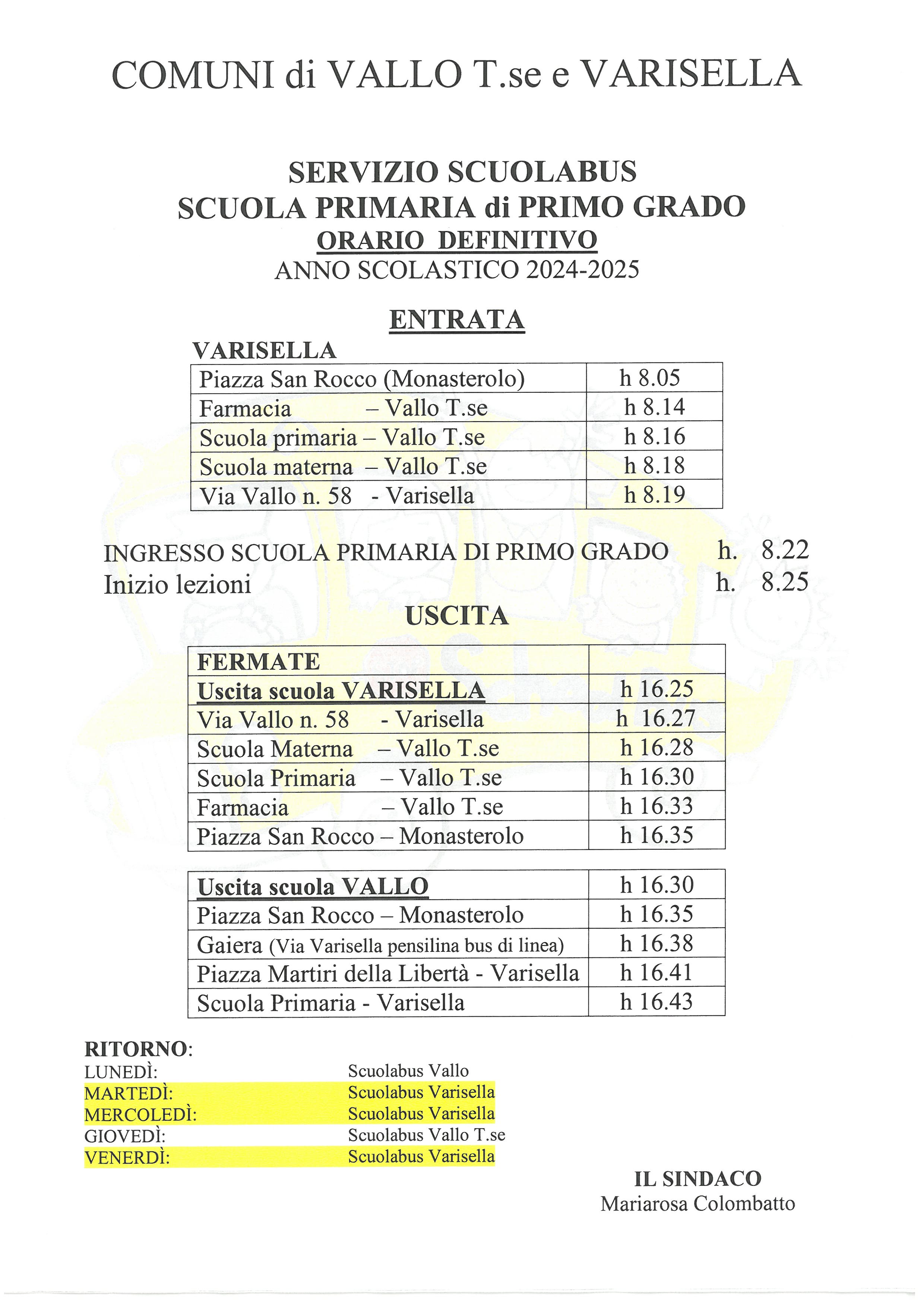 In allegato il prospetto dell'orario definitivo per la Scuola Primaria di Primo Grado.