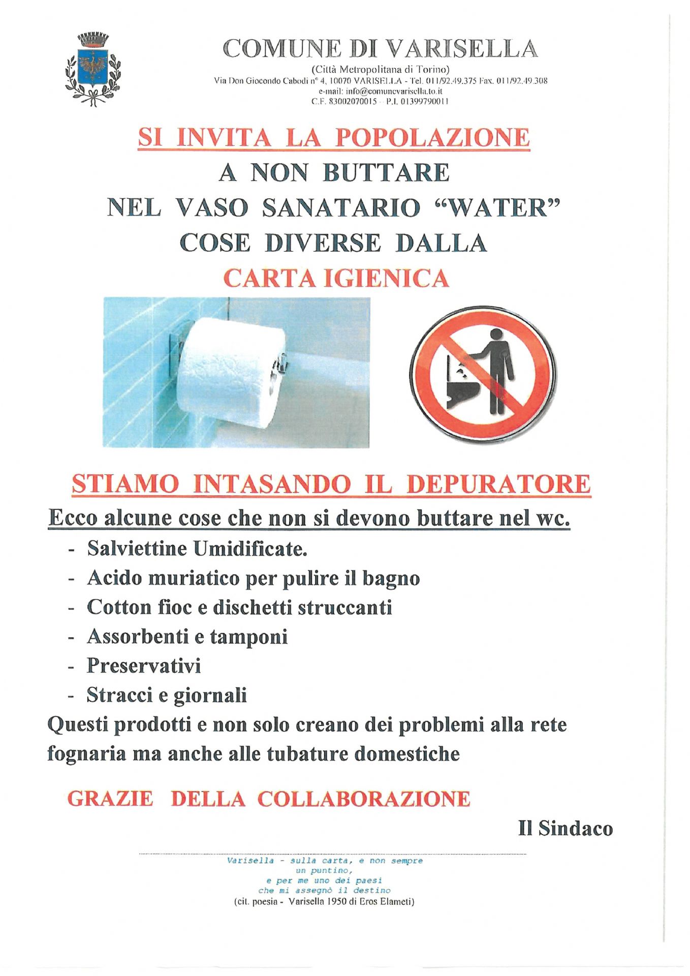 Si invita la popolazione a non buttare nel vaso sanitario cose diverse dalla carta igienica.